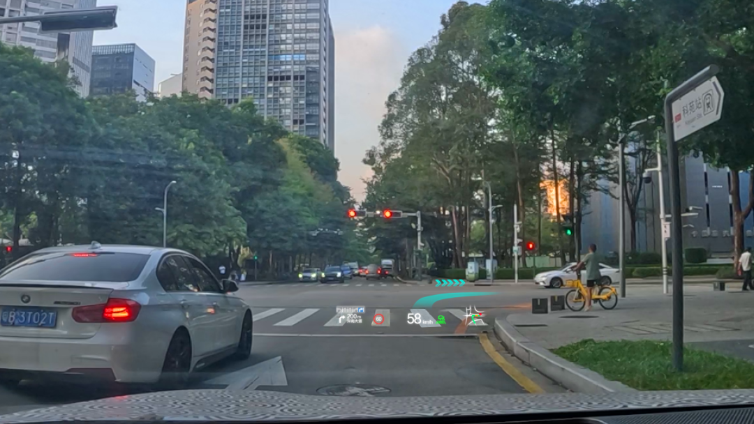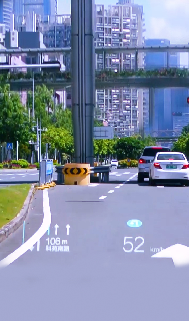 基于復(fù)雜變量環(huán)境完成大尺寸、小體積的光機設(shè)計,并采用多數(shù)據(jù)融合算法實現(xiàn)導(dǎo)航、ADAS等輔助駕駛信息在真實路況上的疊加、融合顯示,提升駕駛安全性的同時給予更酷炫、更智能的駕駛體驗。